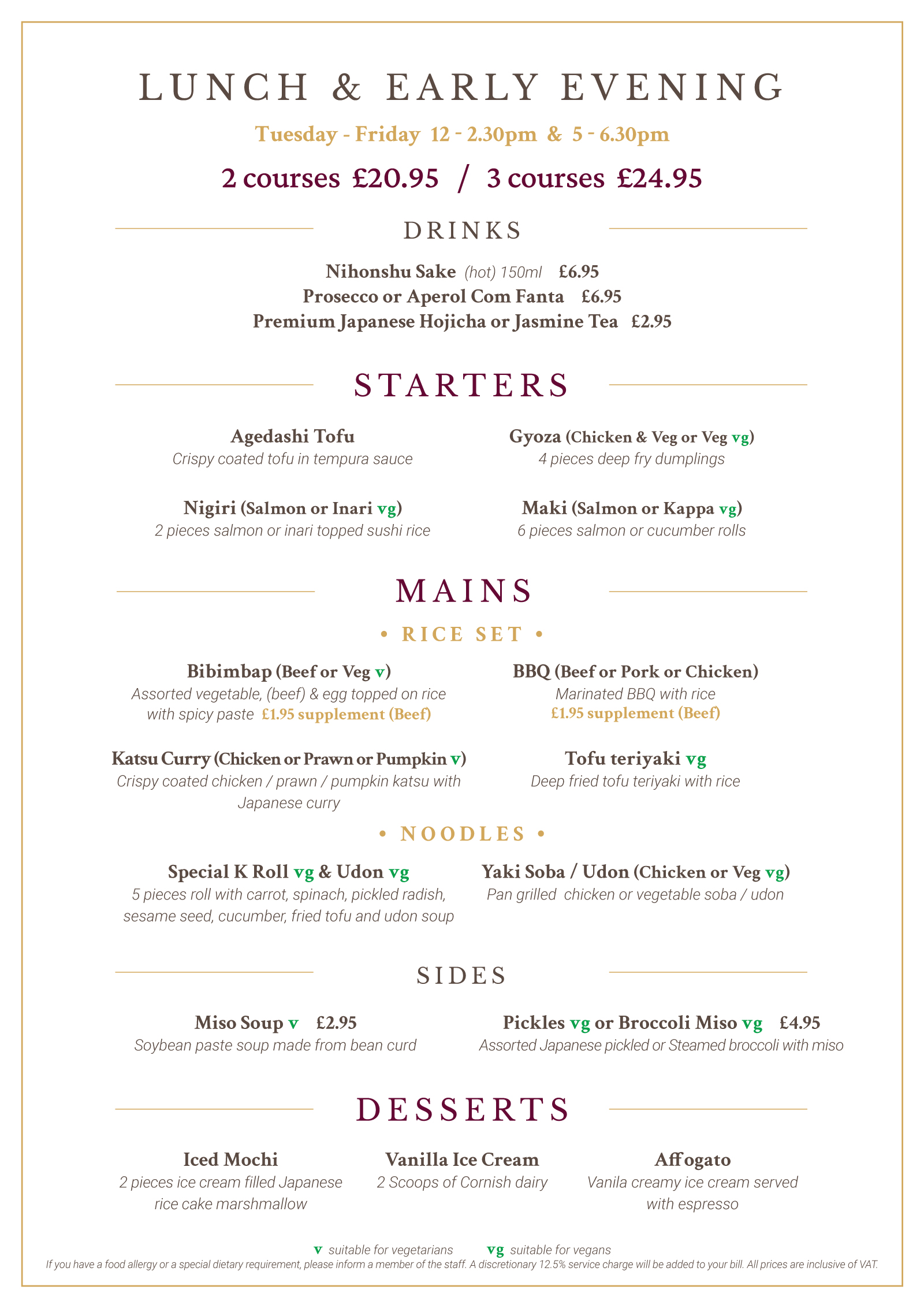 veg sushi & maki, veg tempura, tofu teriyaki 28.9